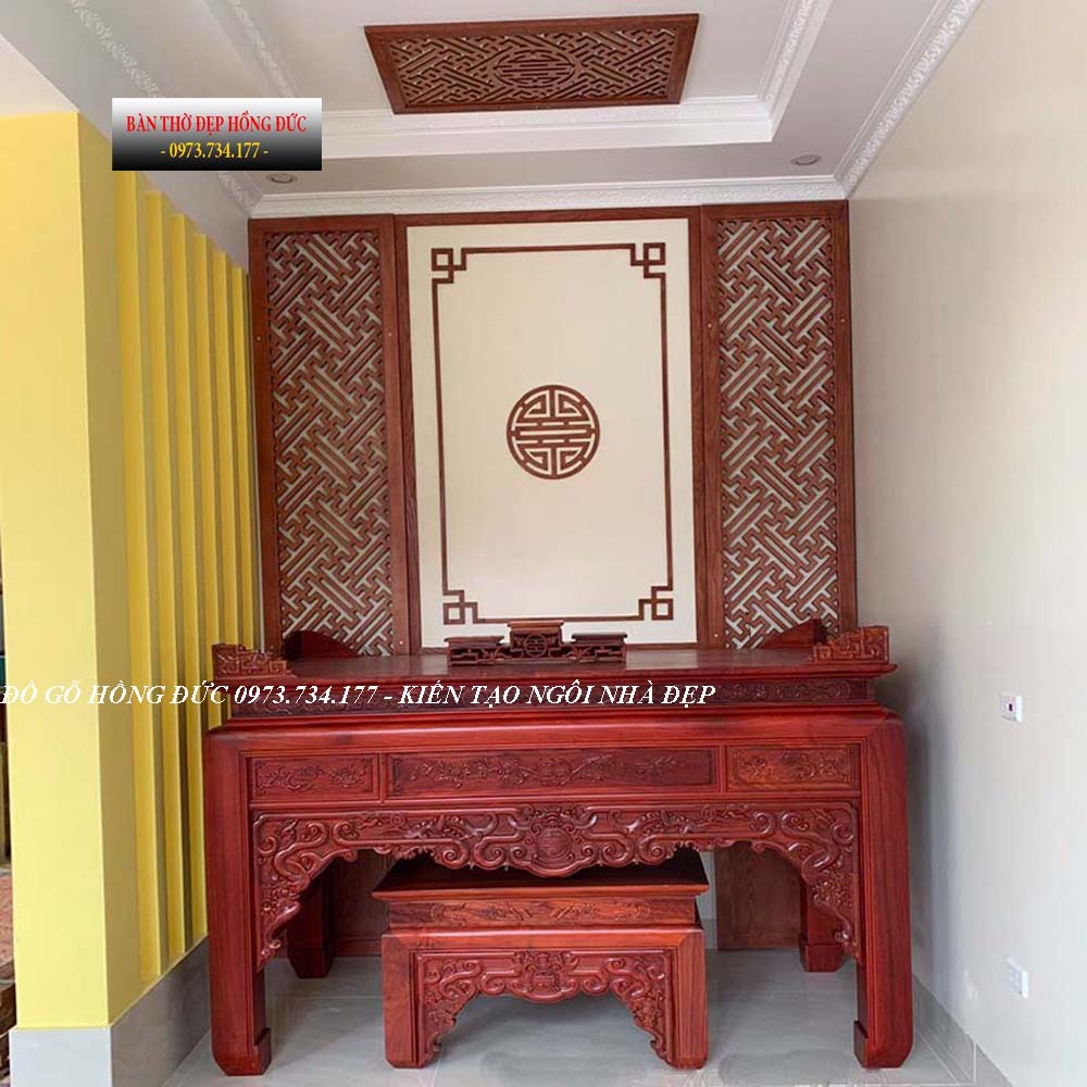 Mẫu bàn thờ gỗ hương đá kích thước lớn- vách cnc trang trí phòng thờ
