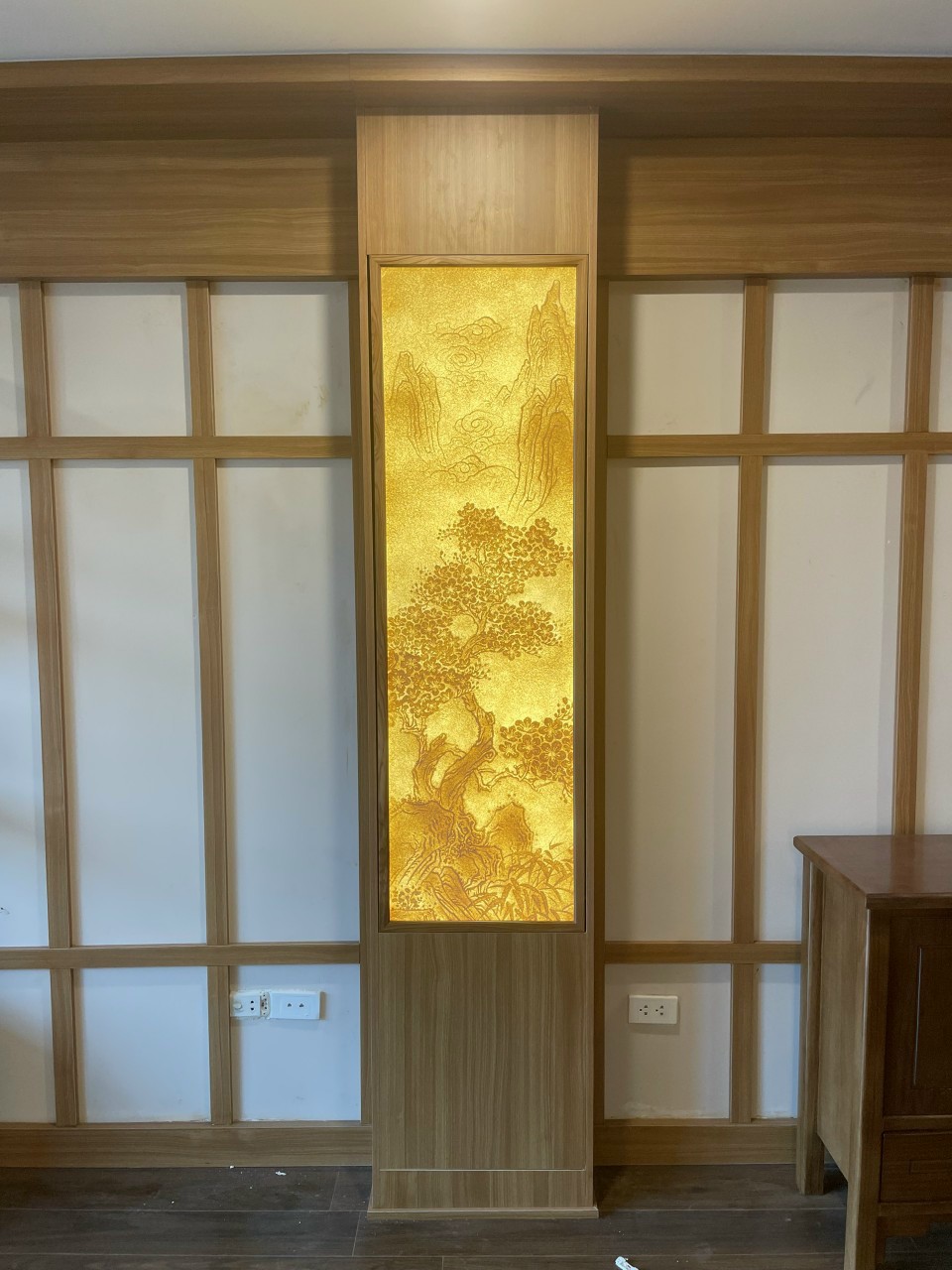 _ Chất liêu: Tranh làm từ giấy dừa thủ công, khung gỗ sồi tự nhiên