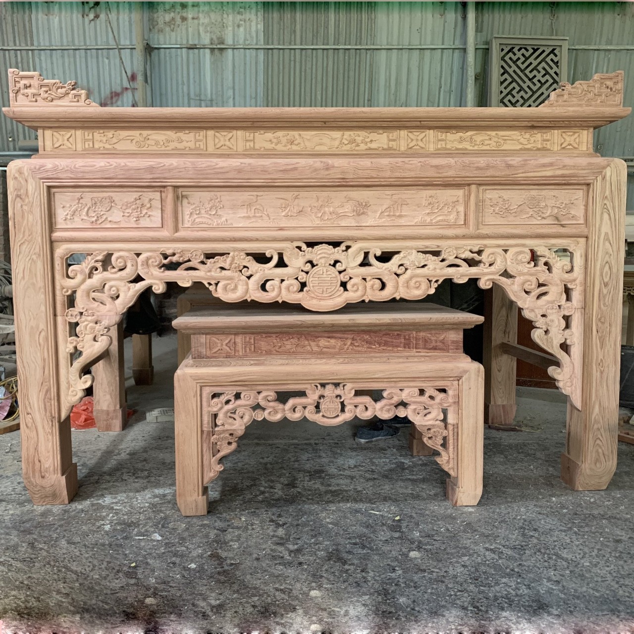 Bàn thờ gỗ hương đá 217x107cm