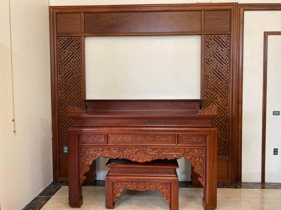 _ Bàn thờ làm bằng gỗ là phù hợp nhất hiện nay có nhiều loại gỗ tốt cũng như các loại gỗ thông thường để lựa chọn: gụ, hương, dổi, gõ đỏ, mít, cẩm vàng, sồi