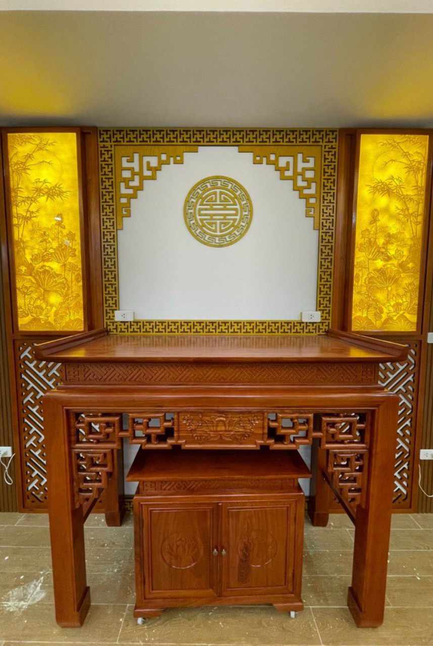Mẫu bàn thờ gỗ hương đá kích thước lớn- vách cnc trang trí phòng thờ