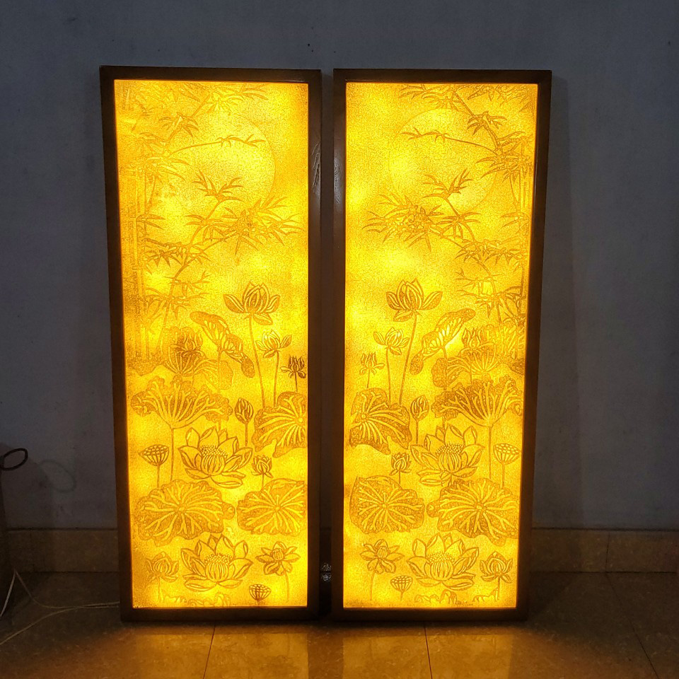 Tranh hoa sen- bồ đề chữ nhật treo bàn thờ
