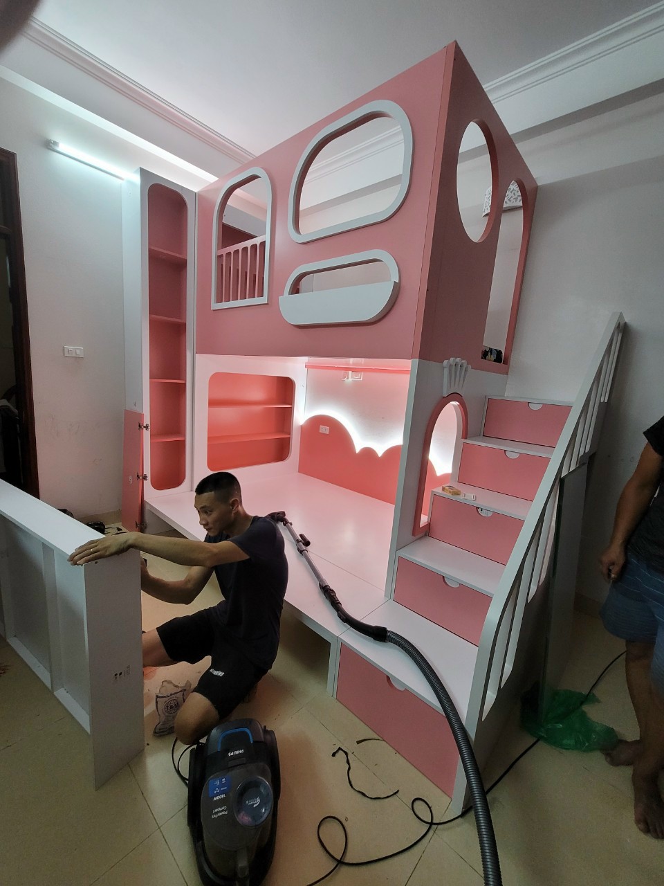 Lắp đặt nội thất phòng ngủ: giường ngủ, tủ áo, bàn trang điểm