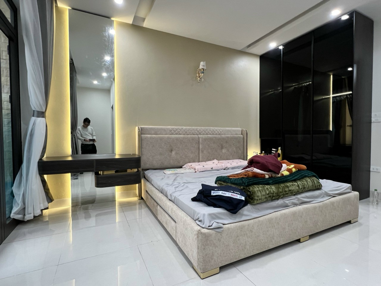 Lắp đặt nội thất phòng ngủ: giường ngủ, tủ áo, bàn trang điểm
