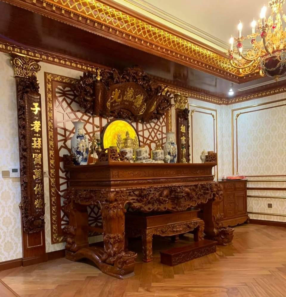 Sập thờ tứ linh- Phòng thờ cho nhà biệt thự